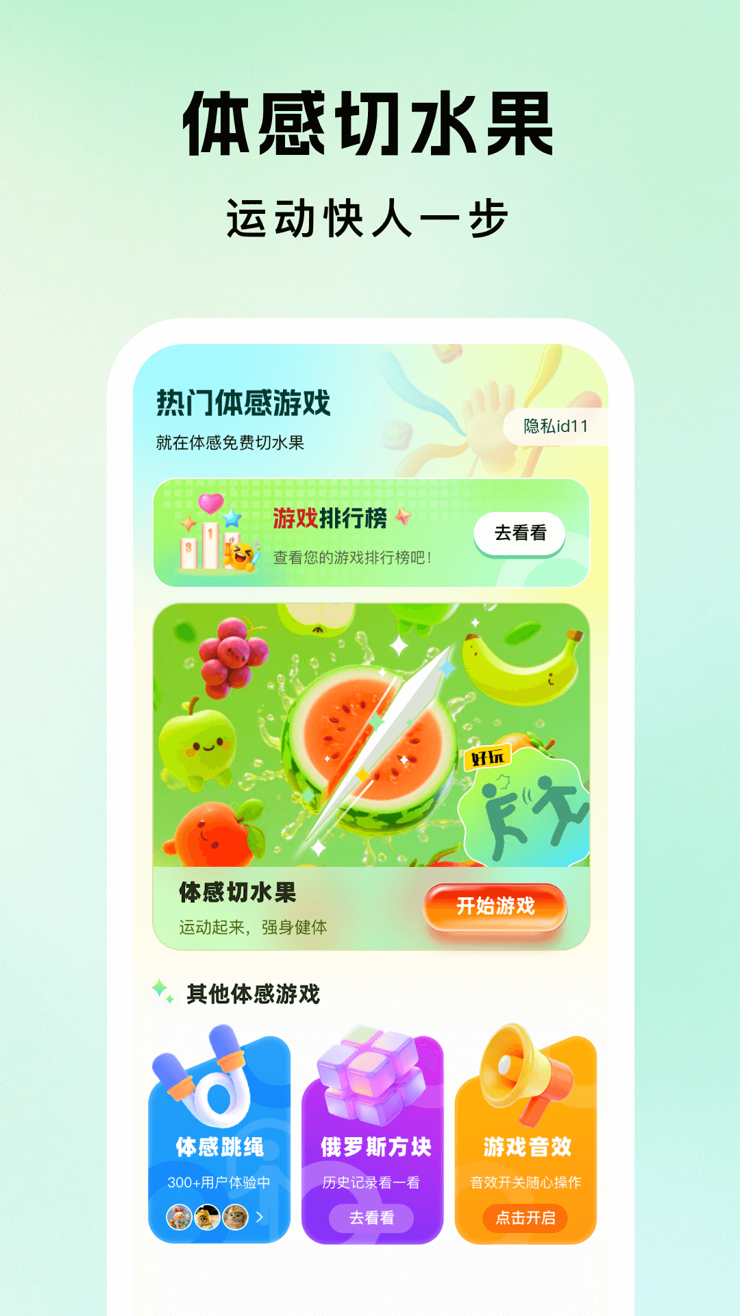一款智能健身,趣味文化的运动体验。涵盖多种运动类型,满足不同用户的运动需求。助你清晰了解运动成果,保持运动动力。“人体切水果运动” 带你解锁全新运动方式,让每一次挥臂都充满乐趣!让运动像玩游戏一样让人沉浸其中。