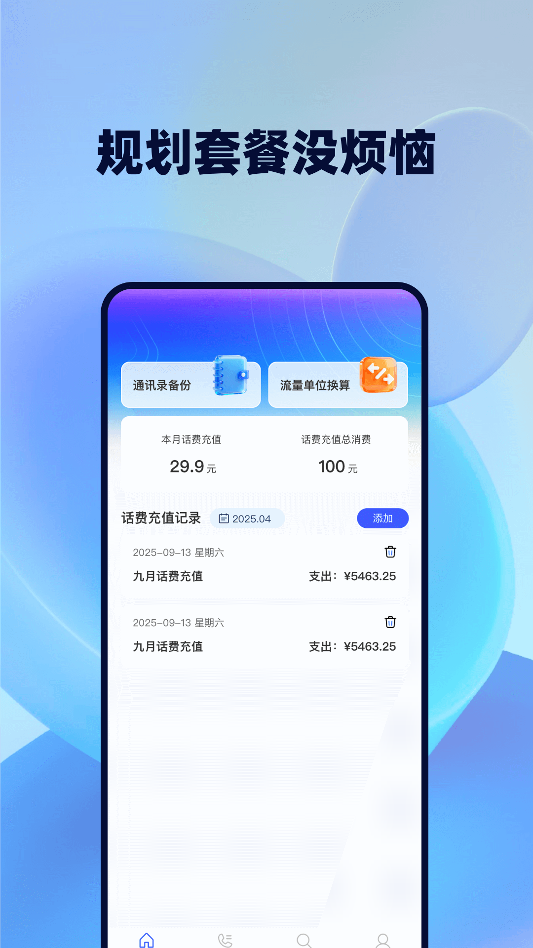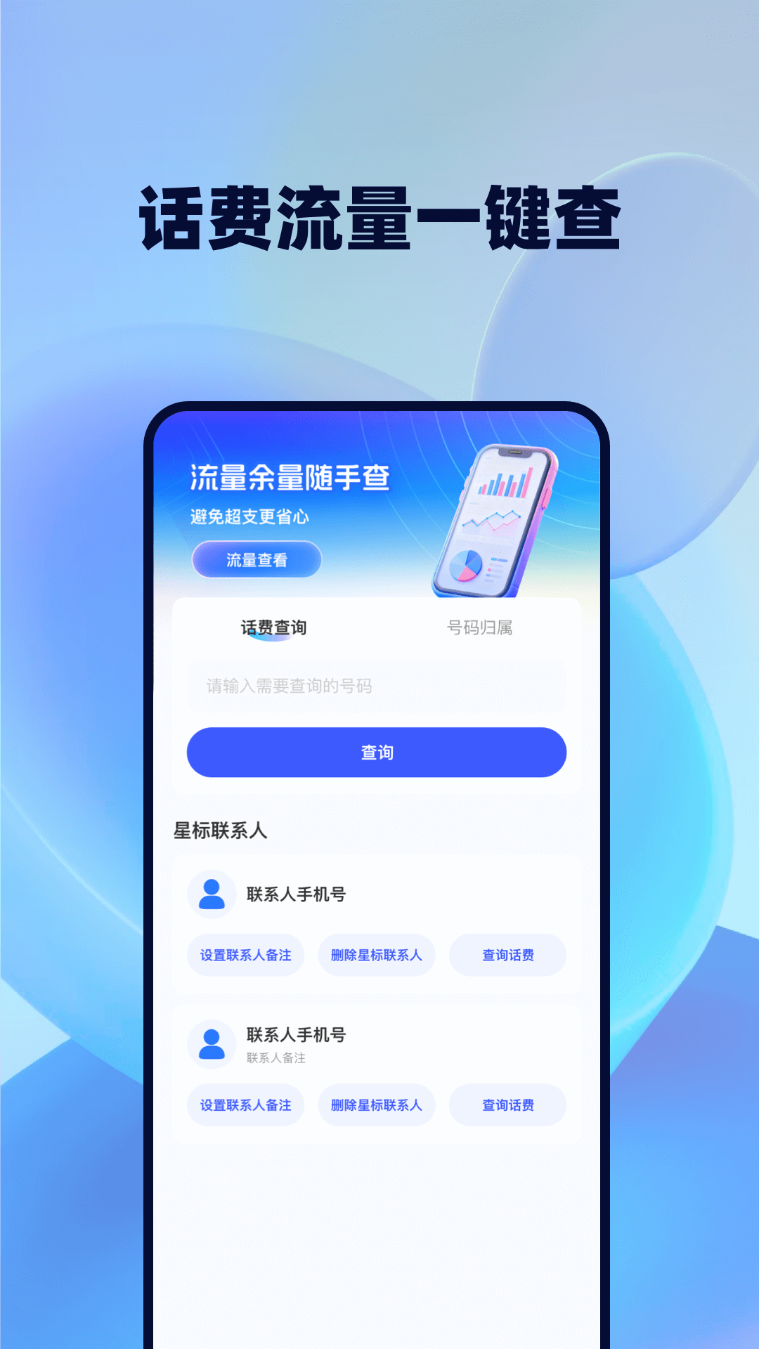 是一款专为用户打造的流量话费相关工具。它支持话费流量一键查询,简洁界面搭配简单操作,让您随时随地了解流量话费知识。